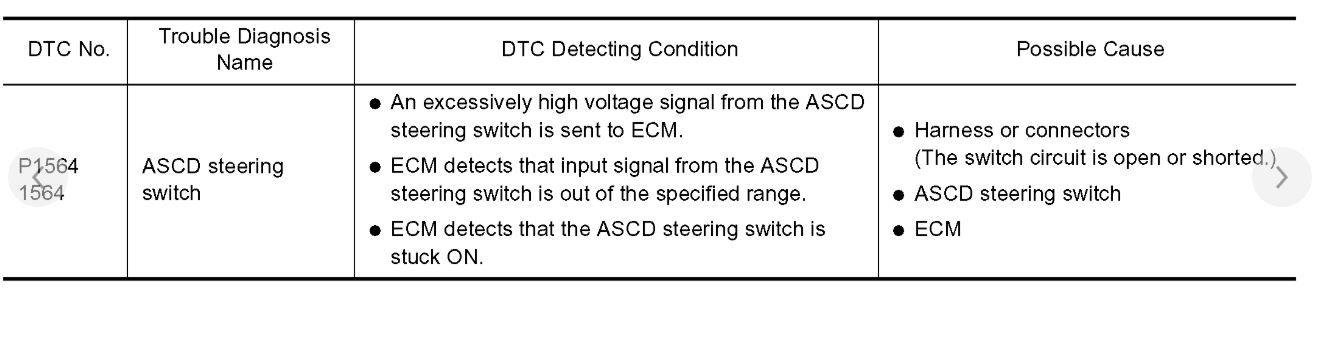 NOTE: If DTC P1564 is displayed with DTC P0605, first perform the trouble diagnosis for DTC P0605. Refer to EC-397, "DTC P0605 ECM". See: A L L Diagnostic Trouble Codes ( DTC ) > P Code Charts > P0605