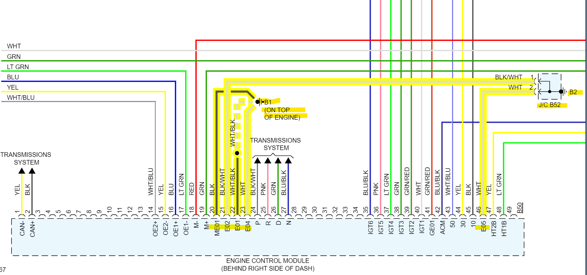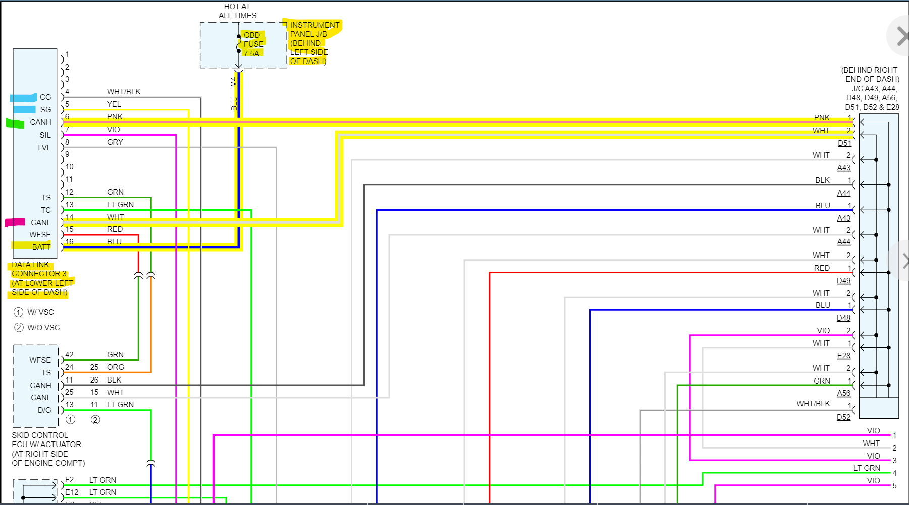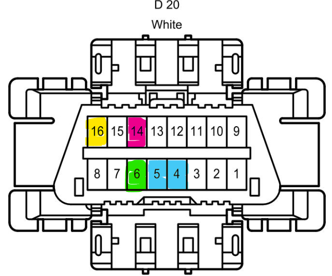 And on pin 6 is Canbus High and pin 14 is the Canbus Low. Those are the high speed communications pins. With a multimeter you should average 2.5volts on either of these pins with the other multimeter lead on a ground. Canbus High and Low should mirror each other just opposite voltages. So Canbus High will signal 2.5 to about 3.75volts. While canbus Low will signal 2.5 down to 1.25volts. With a bias voltage of 2.5volts.
