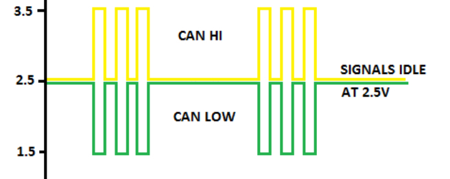 But because a multimeter can only average a voltage at such a high speed like the BUS is, you will see mostly 2.5volts on each. If you happen to see either High or Low at 12volts or 0volts or anything else odd like that, that's an issue.