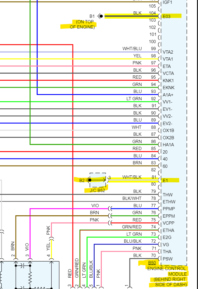 This IGN Fuse 10amp sends power to the ECM and to the EFI relay and C/Open Relay which in turn powers up other sections of the ECM diagrams 1,2. Diagrams 3,4 are the ECM Grounds and there are quite a few of them. If you need Ground locations let me know, but check power at the IGN fuse with the key on first.