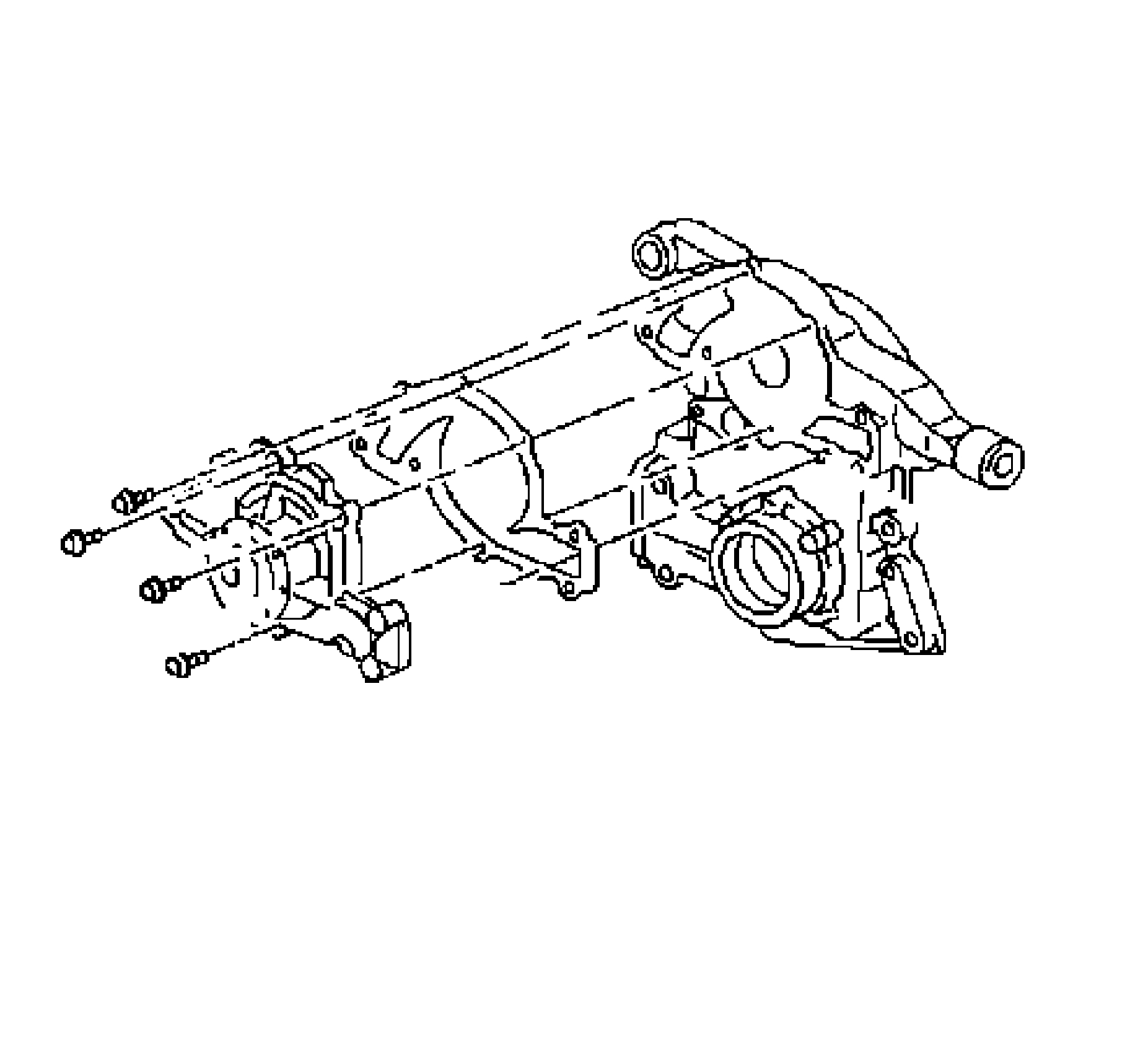 6. Remove the heater hose adapters with the heater hoses from the drive belt tensioner. Refer to Heater Inlet Hose Replacement (L26 - 3.8L) (See: Heater Hose > Removal and Replacement > Heater Inlet Hose Replacement) and to Heater Outlet Hose Replacement (L26 - 3.8L) (See: Heater Hose > Removal and Replacement > Heater Outlet Hose Replacement) .