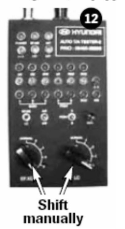 ^Shift the transaxle to "D". Move the gear selector switch of the A/T Tester and shift manually in 1, 2, 3, 4, and 5 gears (if equipped).