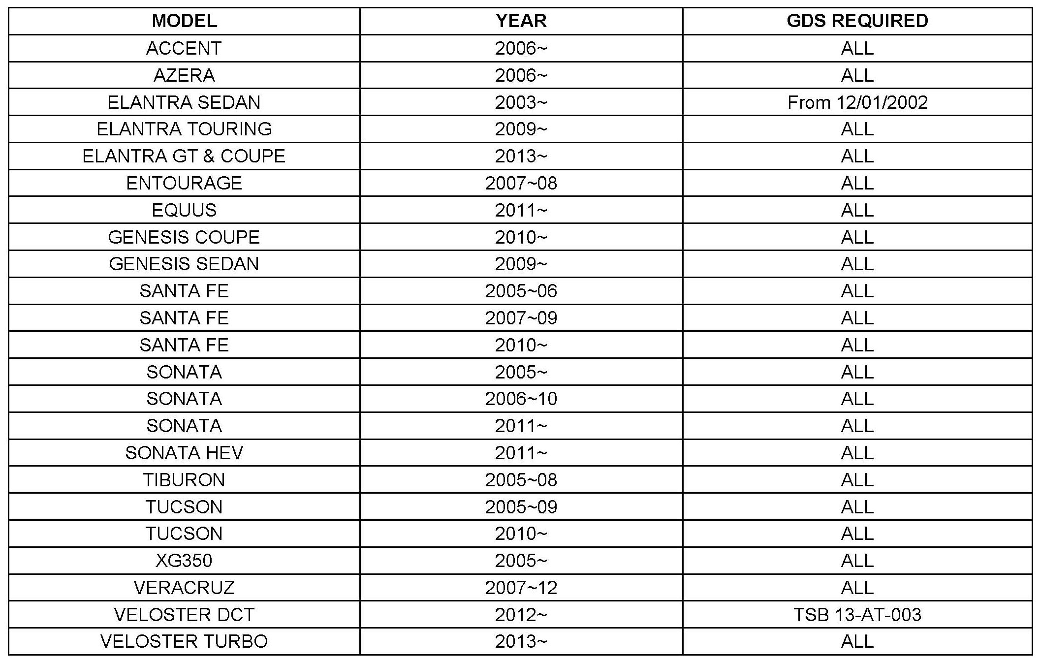 GDS must be used to reset (erase) the adaptive learning for the following vehicles.