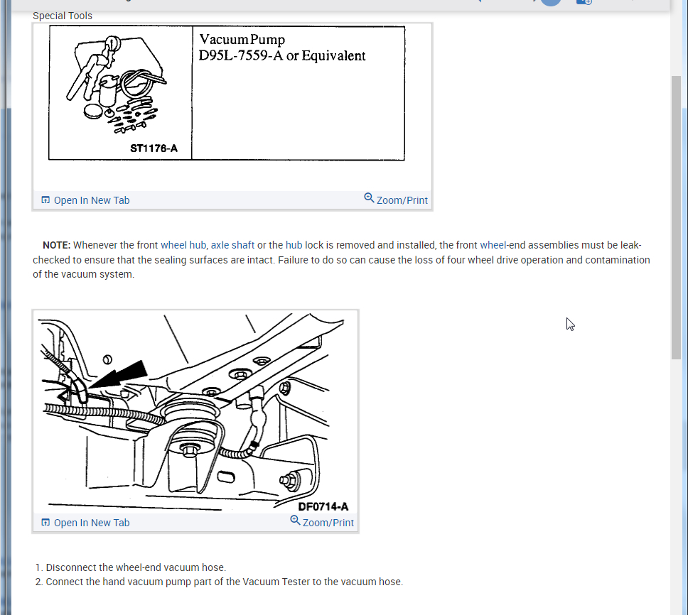 I am attaching the testing that is needed to test these and the replacement process. Most of the time you have a vacuum leak so when using the pump is it does not engage the hubs then the lines are normally cracked.