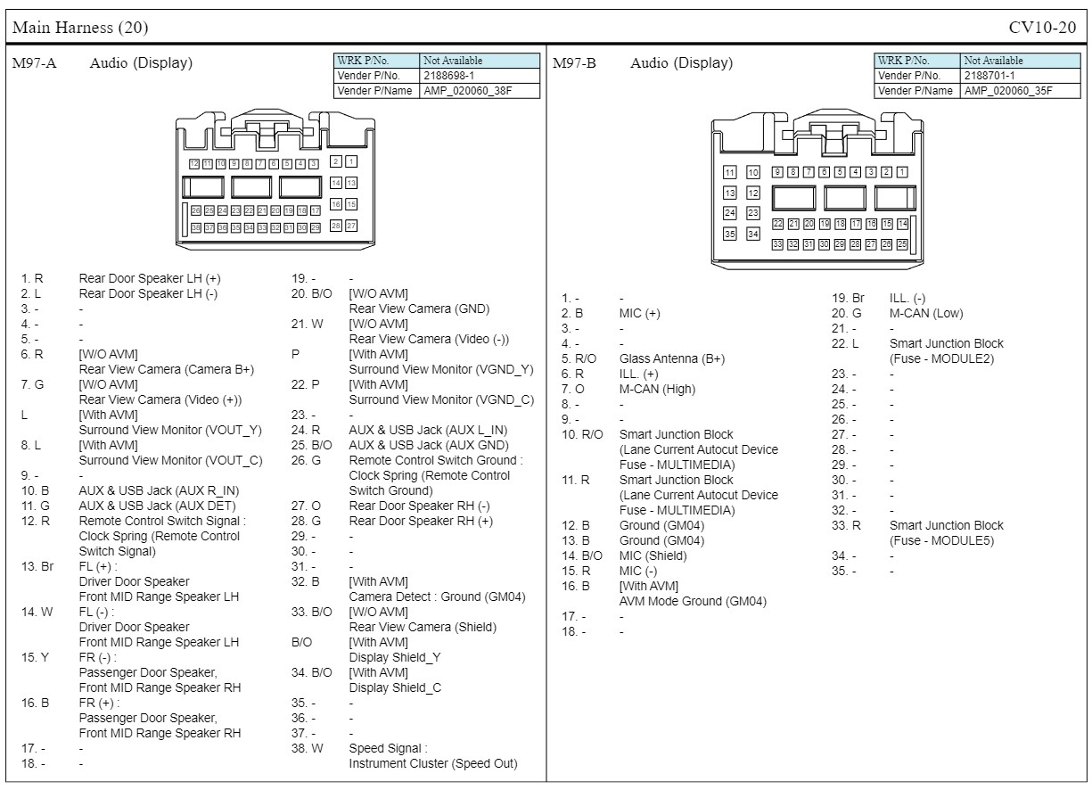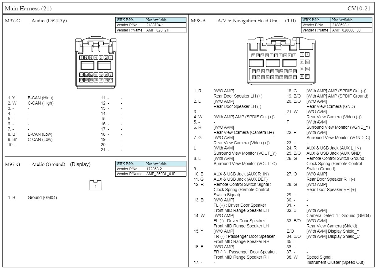 I have been looking for the pinout for my AVN, but I am unable to find a match. I am wondering if anyone has any information on this AVN pinout.