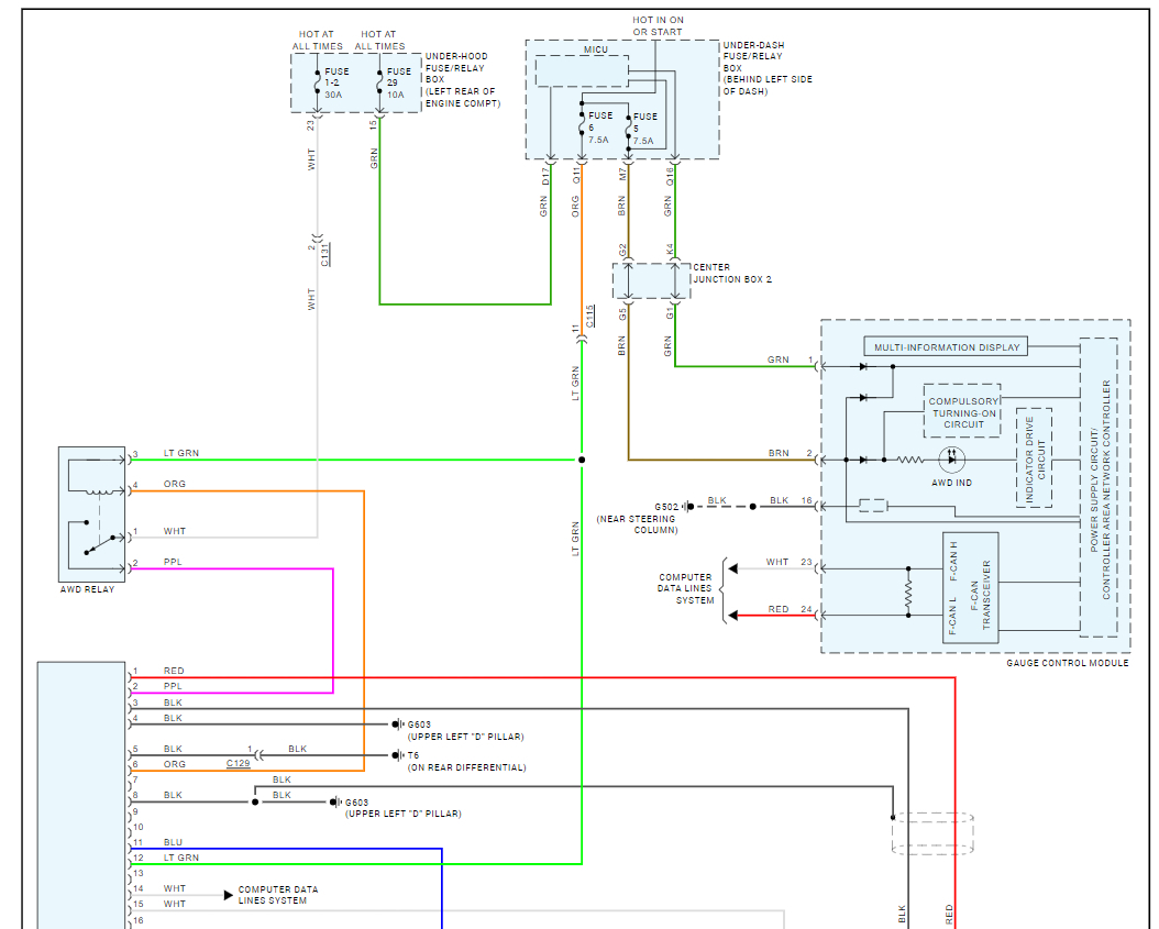 Hi Pros, can I have the AWD diagram can bus signals, light stays on dash, and these are the fault codes I get U100-00 / C1841-13. Please take a look at the images I sent.