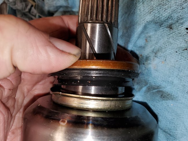 Just replaced both axles. The drivers side doesn't want to go back in and leaks now.
