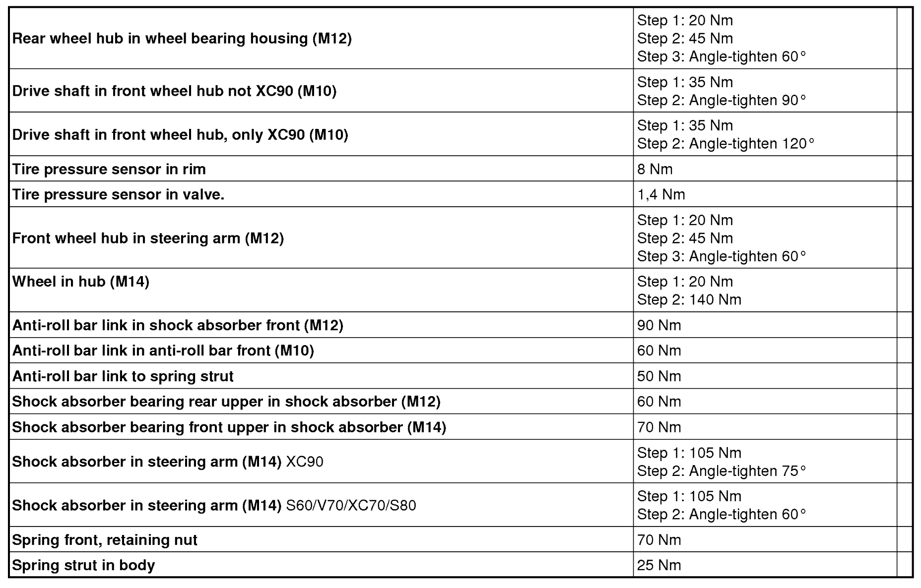 The spec i have here is for an m10 bolt for XC90 vehicles.