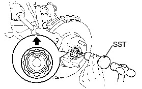 Using SST, remove the front drive shaft.
