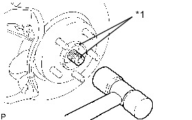 Using a plastic-faced hammer, disconnect the drive shaft from the axle hub.