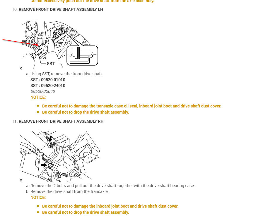 DRIVE SHAFT / PROPELLER SHAFT: FRONT DRIVE SHAFT ASSEMBLY: REMOVAL; 2014 MY tC [05/2013 - ]