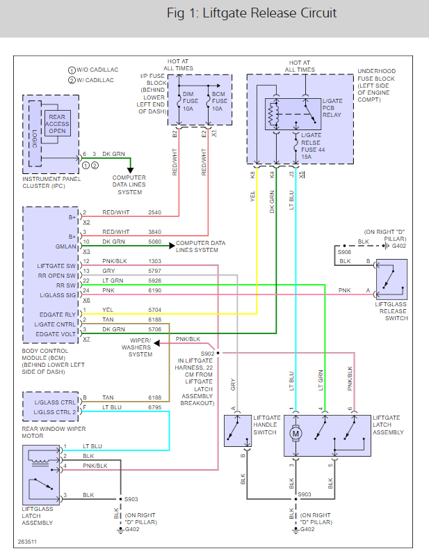 These trucks had a problem with the life gate motor going out which sounds like this is what happens to your car, but to be sure lets check the power and ground to the unit housing. This guide and the wiring diagrams below with the location of the life gate motor.