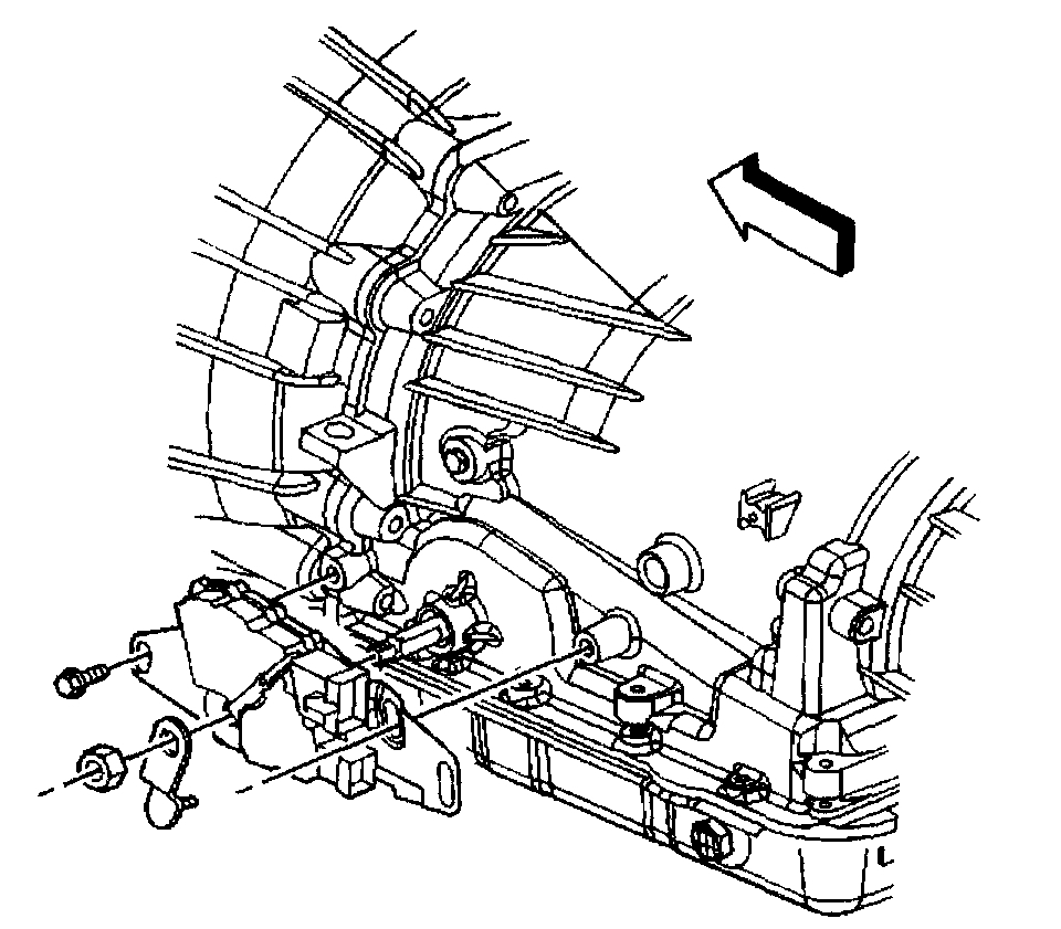 2. Slide the PNP switch onto the transmission manual shaft until the switch mounting bracket contacts the mounting bosses on the transmission.