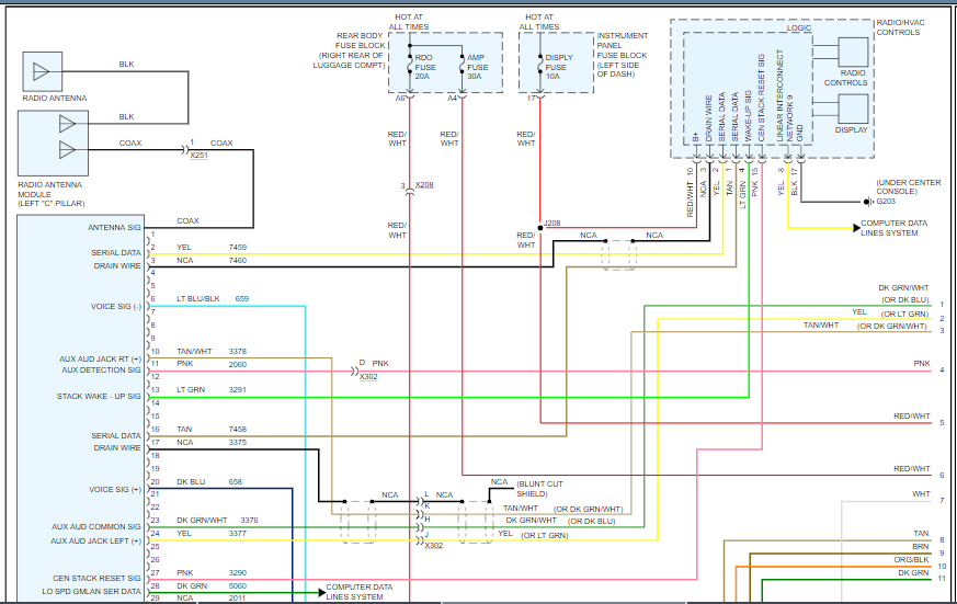 I've attached the radio diagrams you requested below for your car. I've cut the diagrams in half so you can view larger. The first 4 pictures are for the base audio system and the last 4 pictures are for the premium audio system. Hope this helps and thanks for using 2CarPros.