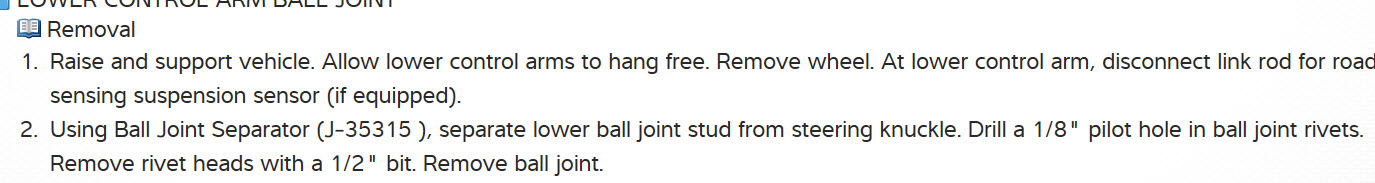 If you are removing an original ball joint, it is going to be riveted to the control arm. I removed those with a very large air hammer with a chisel bit for the heads, then a punch bit to push the rivets out. There is absolutely no way you will get those rivets out with hand tools.
