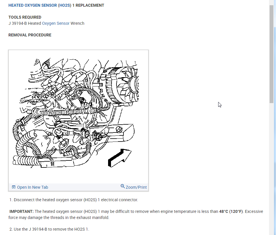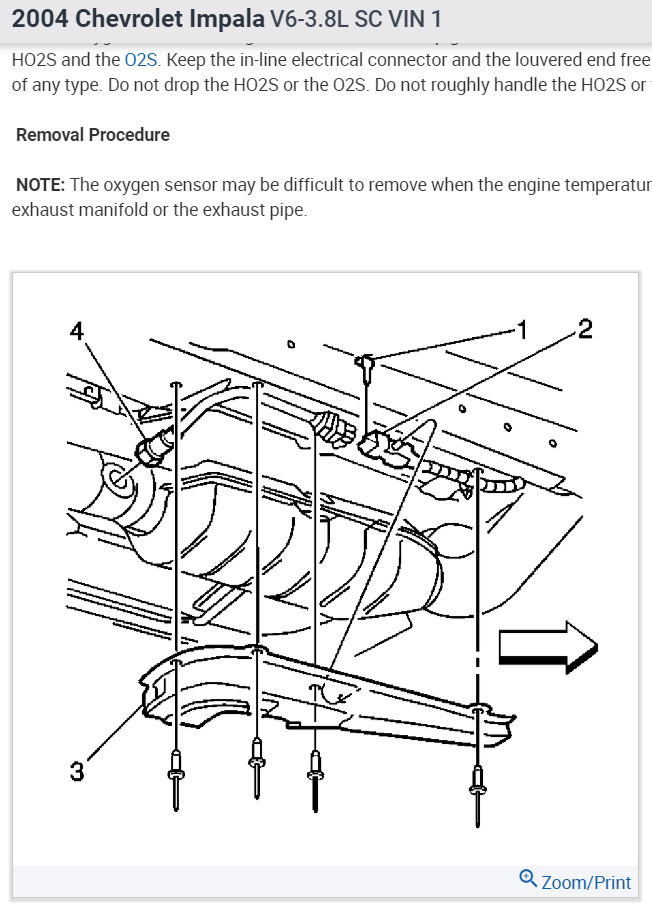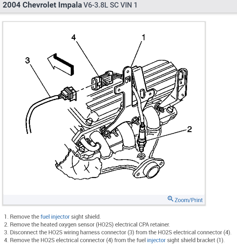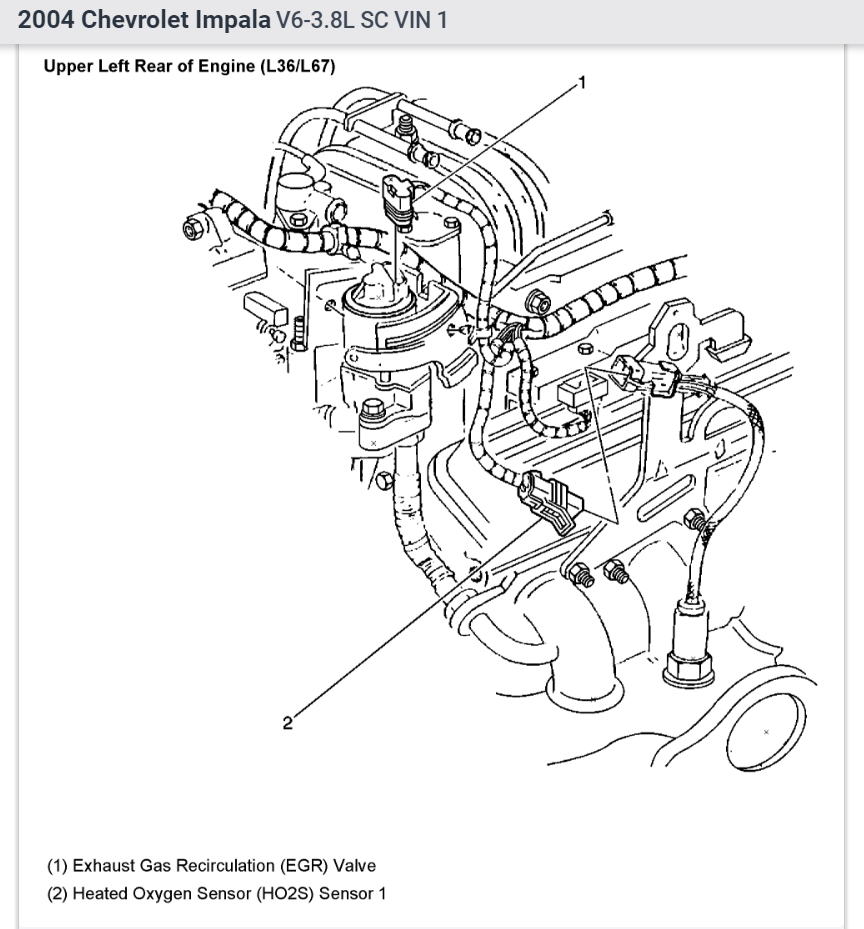 Heated Oxygen Sensor (HO2S) Sensor 1 (3.8L VIN K & VIN 1)Above exhaust manifold. See Fig. 56.