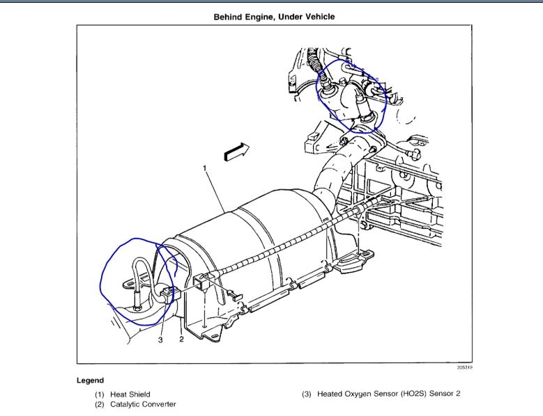 Heated Oxygen Sensor No. 2 (3.8L VIN K)In exhaust system, behind catalytic converter.