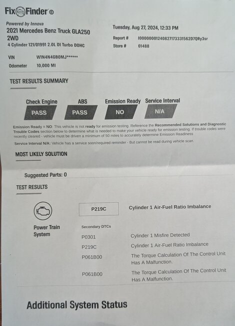 I am including a screen shot of a diagnostic from Auto Zone, might this play into the "Stop Car?" I am going to replace the plugs and ignition coil in a few days. Also, Battery Voltage read 14.77, they said it was still good.