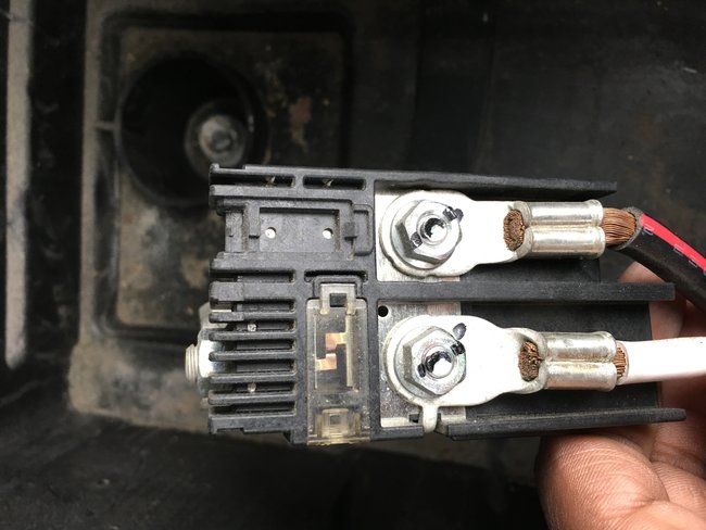 However, when attempting to reconnect the negative lead, sparks fly, smoke and the horn blows without ending, the headlight go on and the engine sounds like it is revving. I quickly removed the lead noticing that it had been burnt and even the battery pole had been burnt.