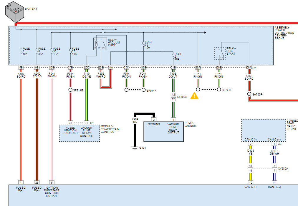 Pins 1+25 are constant 12V supply and pin 6 is ignition 12V supply from run/start relay.