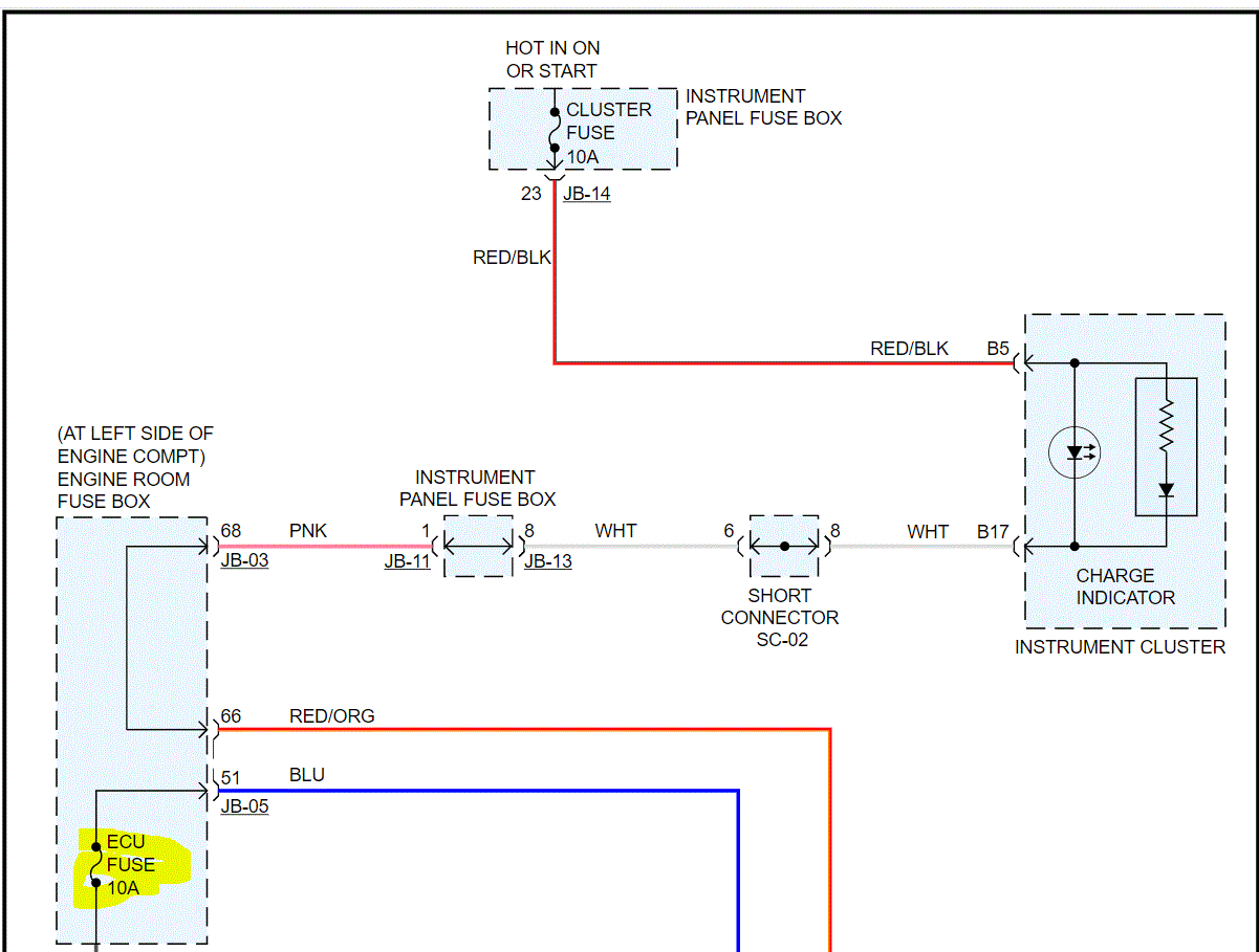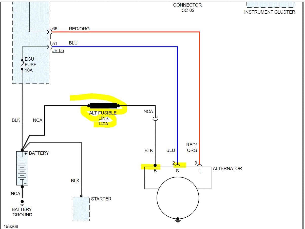 If the fuse checks good, go to the alternator. Locate the blue wire and the black wire. Check for power at each. If you find one has no power, let me know which one so I can explain what to fix.