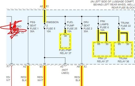 Fuse 23 sends power to many things in another fuse block. I attached those components as well. You will need to remove all the fuses controlled by the 23 and then install a new fuse and see if it still fails.