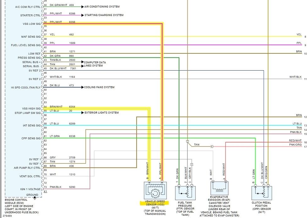As for the vehicle speed sensor code, there are some specs for checking the resistance of the speed sensor for the manual transmission, but the PCM pins they have listed for testing are not the same as what is shown in the aftermarket wiring diagram.