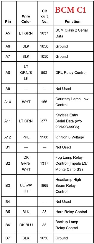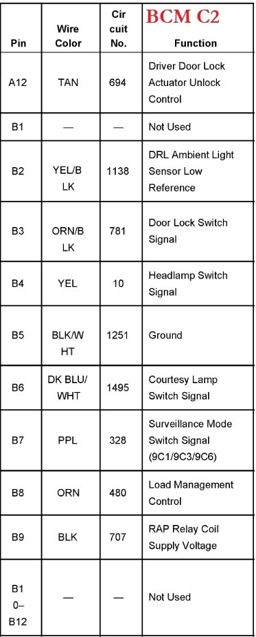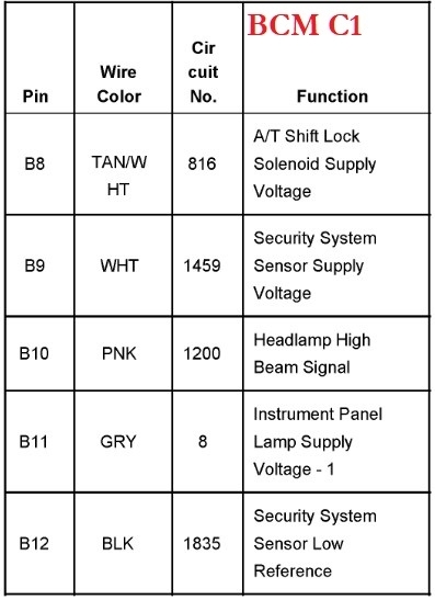 I am installing a compustar remote start and need some help with wiring. The pin out for the BCM would be much appreciated.