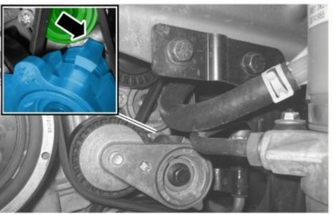 Slacken off the tensioner. Use: 999 7109 Wrench See: Vehicle > Electrical / Mechanical Repair > 999 7109 Wrench. Turn the belt tensioner clockwise as far as it will go. Install the belt.