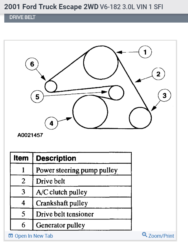 Thanks for the reply, I did have the old belt and its the same size and the diagram that I used is for the 2wd 3.0 Escapes. I went back and tried to see if there were any other sizes but that was the only size they had for my truck. I spoke to the tech there and they told me that I was able to adjust the AC compressor pulley (BTW had the compressor unit pulled its just a pulley there now) to help it fit, is this possible?