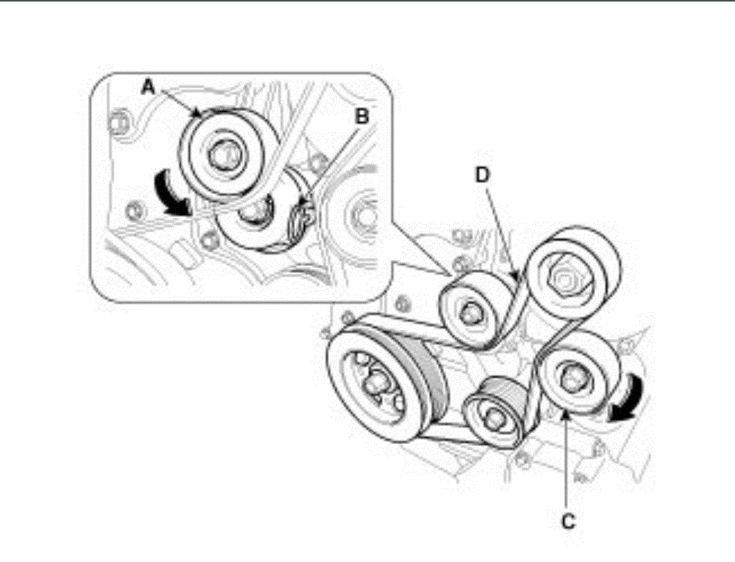 For anyone in the future looking for information on this, because this car (the hybrid) doesn't seem to have hardly any information online. In the diagram (A) is the tension pulley that is obvious. However (C) is also a tension pulley, you need to relieve the tension on both of these pulley's at the same time to get the belt back on. After knowing this you can see it is trying to show that in the diagram but it doesn't really stand out, at least didn't to me. Hopefully this helps someone in the future.