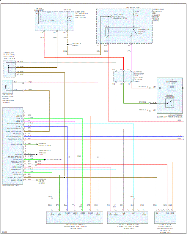 Hey Joe, it didn't look like OP responded, but I am having the same problem, I run the self diagnostic with my old blender actuator plugged in and I get 2 blinks back, meaning a short in the mixer. Then I have the same problem when I plug in a new mixer actuator the light goes off on the ventilation button, and come back and starts blowing again as soon as I unplug, which sounds like a short to me. I also purchased a tested replacement temperature control unit and have swapped that out as well.