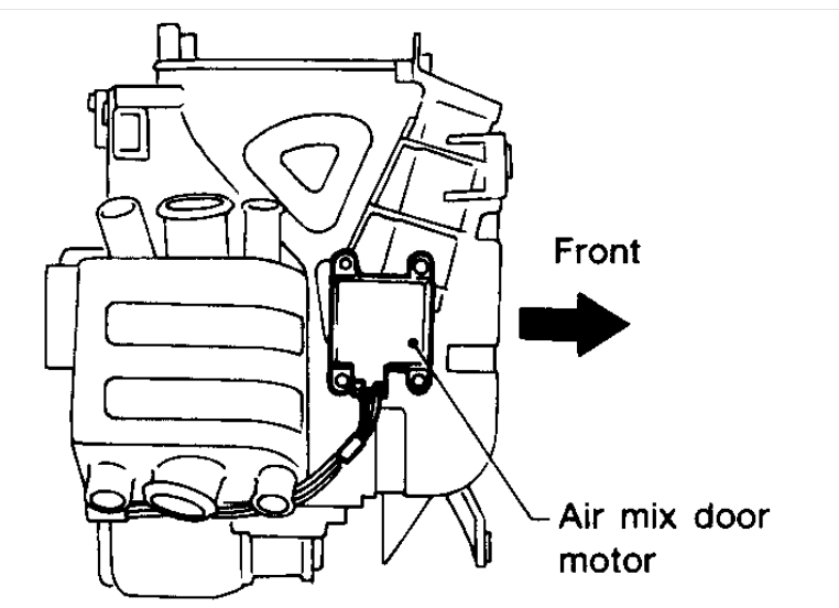 The air mix door actuator should be on the passenger side under the dash. I was able to find a general pic from my manual showing its location.