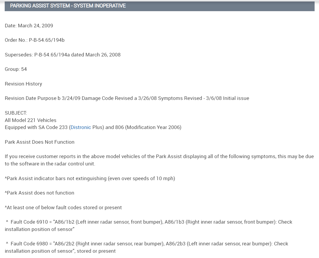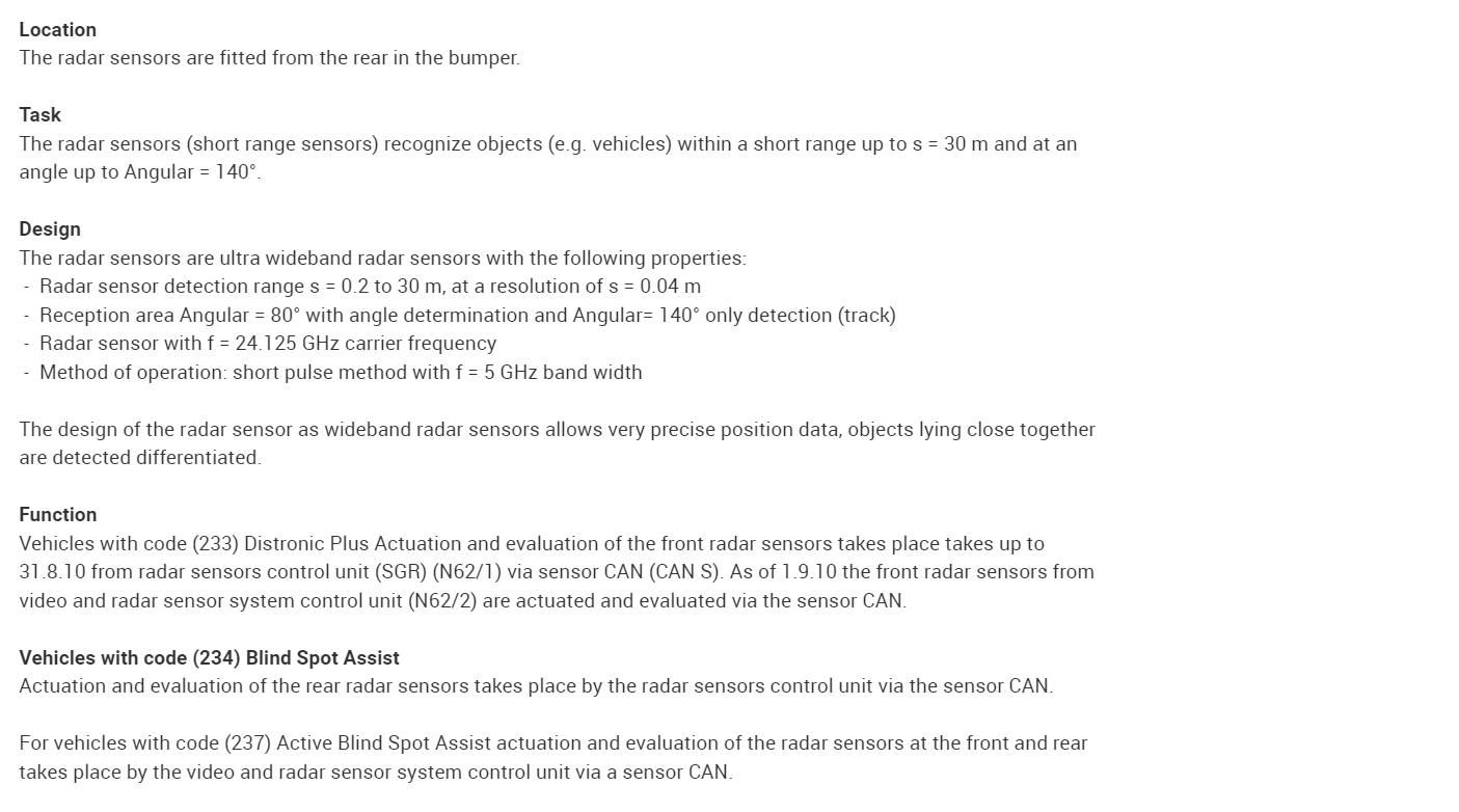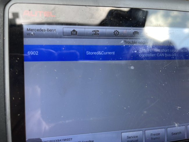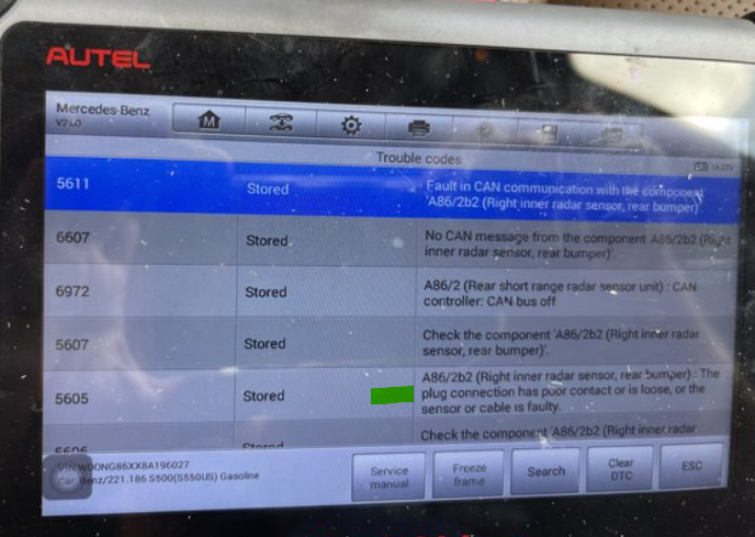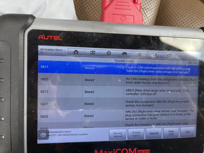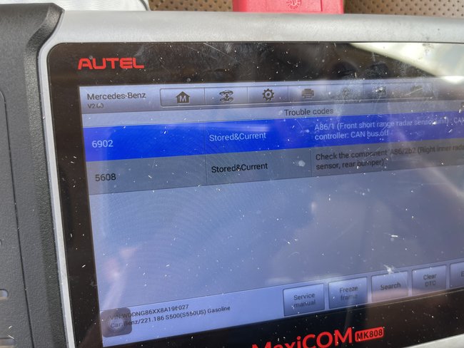 So to start with, here is the location of A86 2b2 Radar sensor and the code 5605 is giving a connector or wiring fault. So I would check the connector here for loose Pin fitment or corrosion to begin with. I dont have all of Mercedes factory information, but we'll do the best we can here.