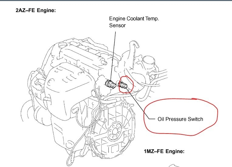 Can you tell me where the oil pressure sensor is on a 2.4l 4 Cyl Camry so I can remove and test/replace it.