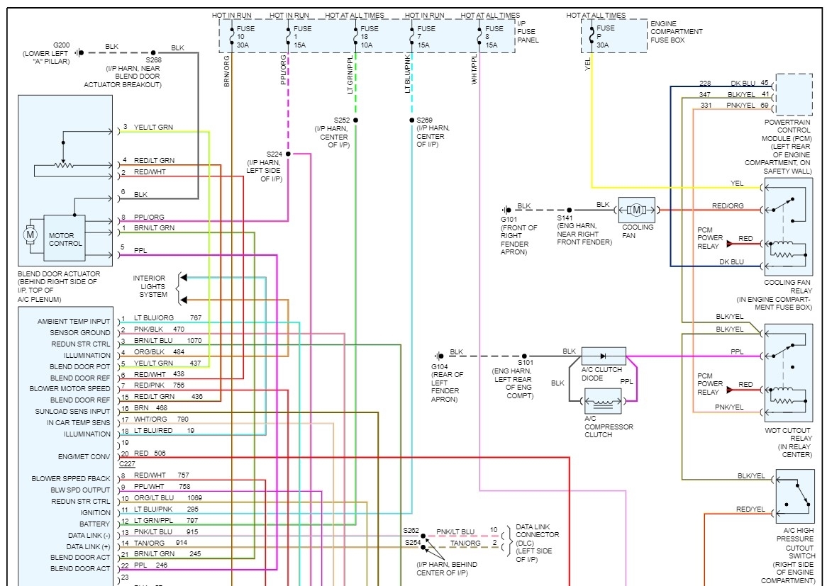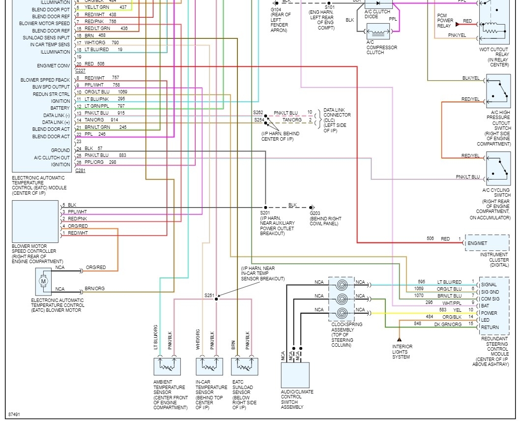 Please check out the diagrams I've attached (below) for the air conditioning system. It's in two parts to help make it easier to read. I've also attached a schematic for the computer data lines and diagram that may help if the EATC module needs to be removed.