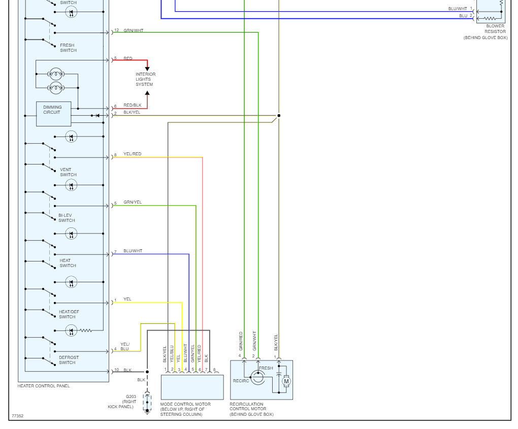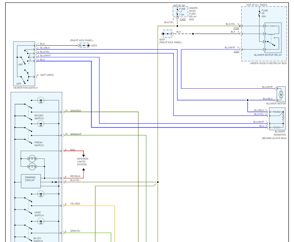There is no air coming into the cab of the car. We turned it on, and it didn’t come on. We checked the switch, and it was good. The fan that blows air into the radiator is fine, but no air comes into the car.