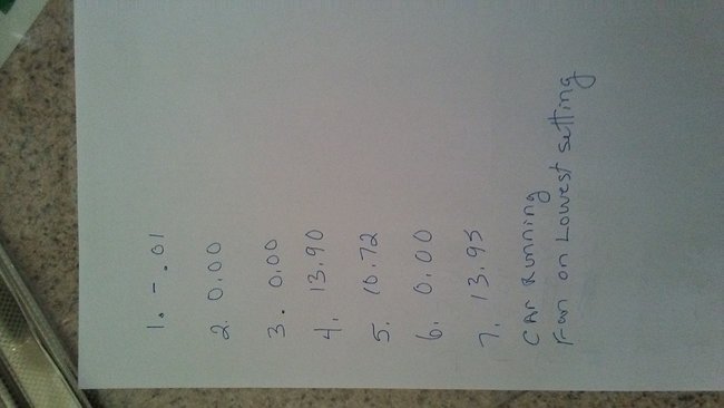 So these were at the points in this diagram with the fan plugged in and on each setting? The fan didn't run at all when you took these as well?
