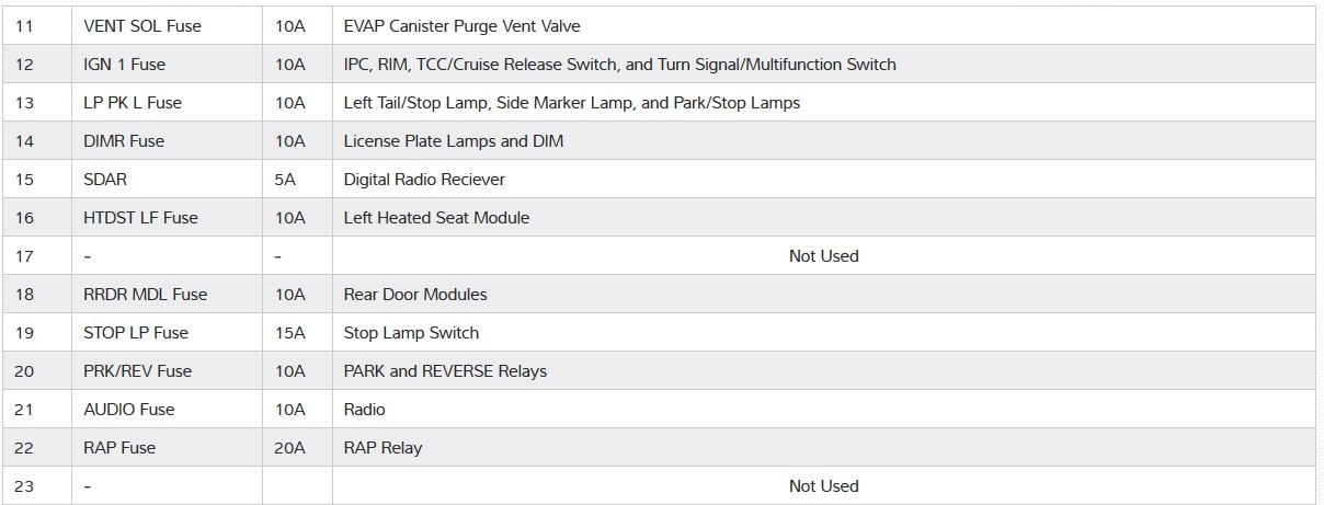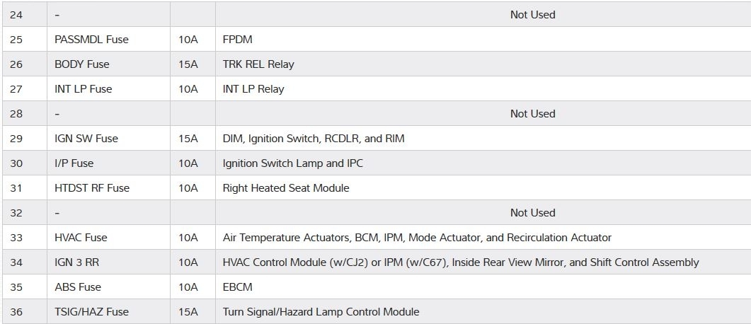 I would start with checking he fuses. Here is the fuse box information for the rear fuse box. Prodemand is not real specific on where it is, so you might have to look in your owner's manual for more specifics. I would check every HVAC related fuse.