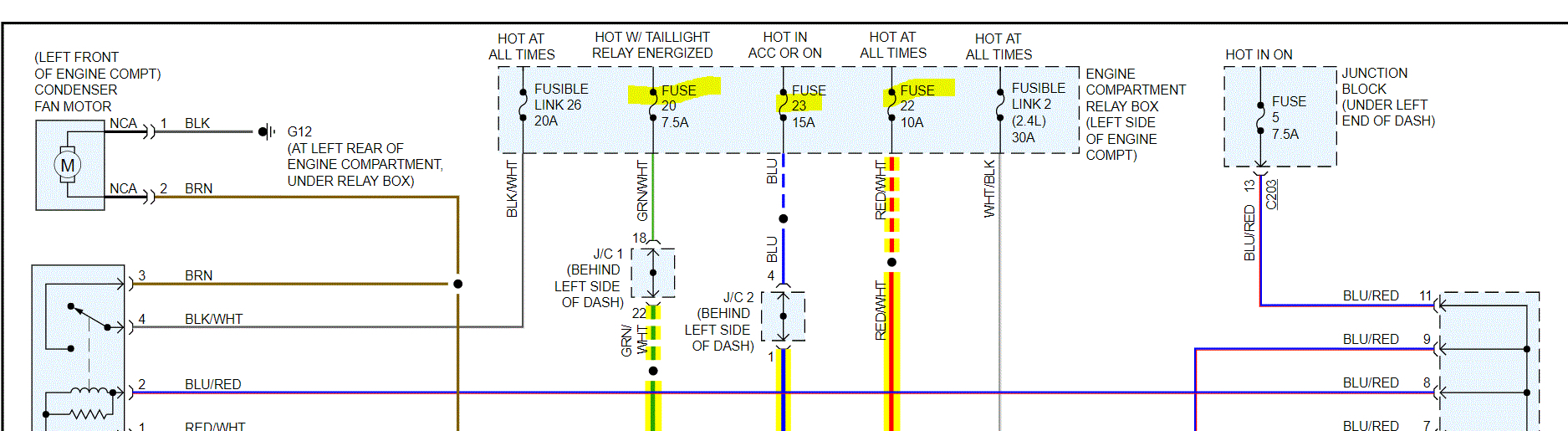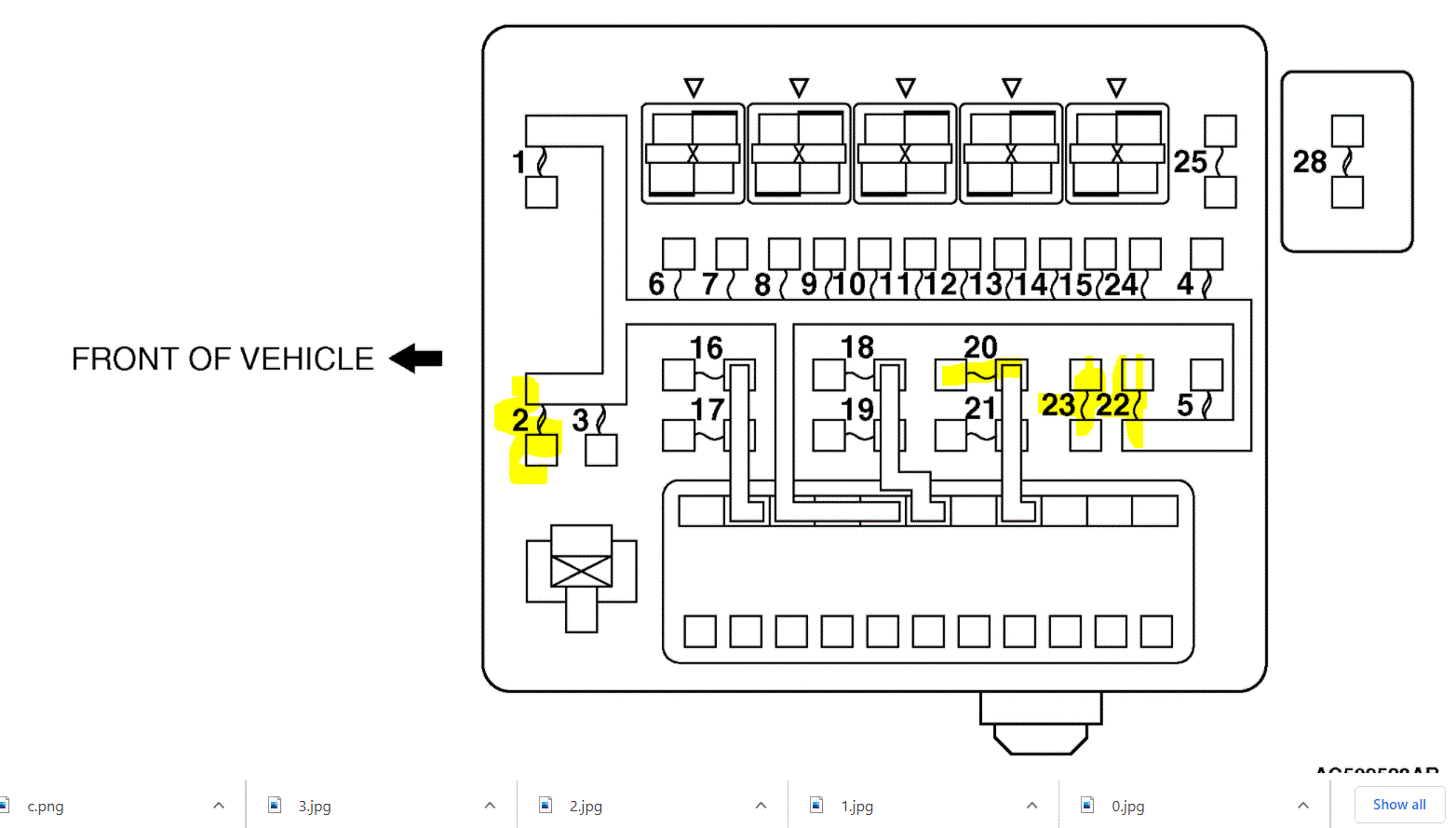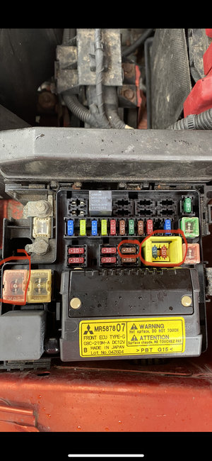 Included below is the fuse box. I seem to be misunderstanding which fuses to check I believe. The ones I circled are the ones I checked to see if blown, they are not. The yellow one i am not sure how to pull it off (if I have to) I will be testing power here soon but wanted to share this first. Please let me know if I’m off track.