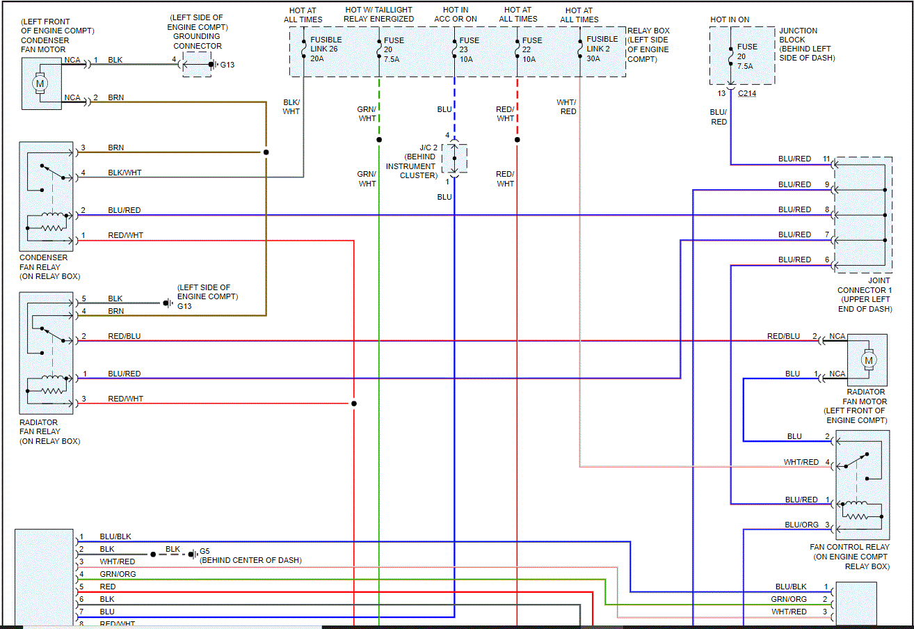 See pics below. Note: The schematic is for manual control HVAC. If you have automatic climate control, let me know. Also, the schematic was two pages long. I had to cut the pics in half to make them readable for you. I did overlap them so you can follow from one to the next.