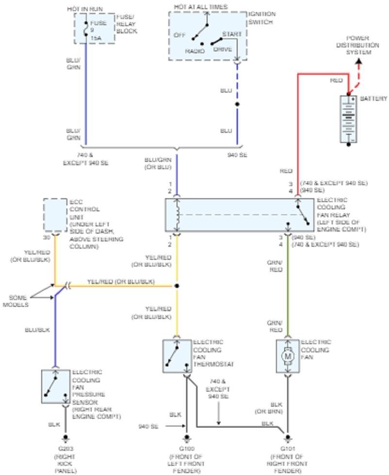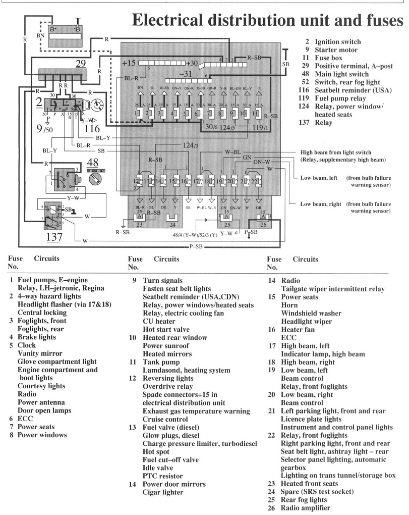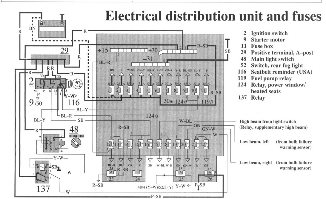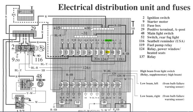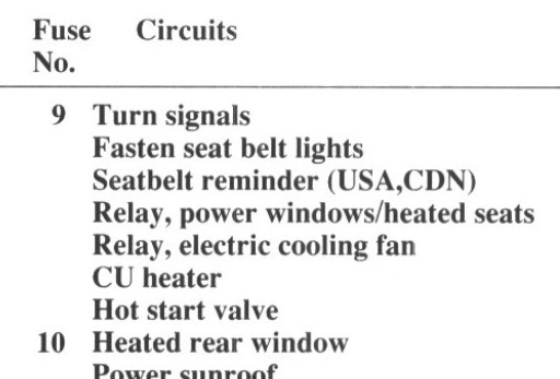 Hi guys. I too had a real hard time following Volvo's diagrams, so I was hesitant to get involved with a problem I probably can't see through to the end. However, if it will be of any help, I'm adding what little I was able to figure out. First let's be sure I'm looking at the right fuse. Fuse # 9 has the blue arrow pointing to it in the first drawing. In the second drawing I posted the fuse box layout. Fuse # 9 is listed as being for the turn signals, cooling fan, power windows, heated seats, and some systems I'm not familiar with. The third and fourth drawings are just of the fuse box layout expanded in two parts to make for easier viewing. I don't see any reference to the ignition system, so please forgive me if I looked up something wrong.