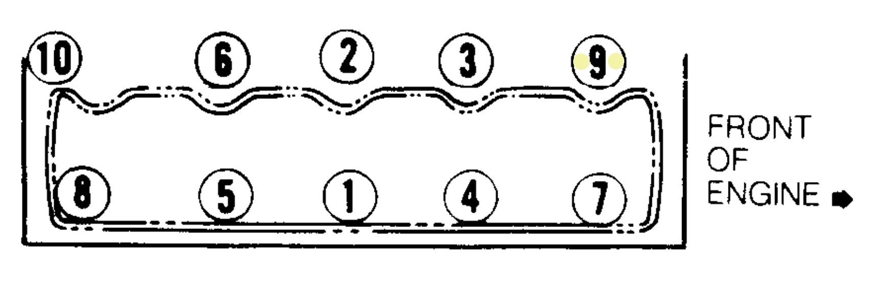Tighten all head bolts in sequence (except bolt No. 9) to 27 ft. lbs. (35 N.m).