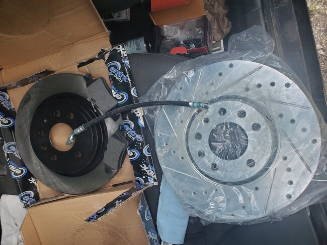 Okay so an update on my car I get it out of the shop $60 later. Nothing is fixed on it except for pretty much the brake hose that I wore a hole through and it was leaking so now it holds pressure into brakes again the same as when I was driving it before I took it to the shop. They did not repair the rear brake caliper and install my new rotor and pads that I had for them to install instead they changed the two front rotors which have already had brand new ones on it and the one was never blood or working so it has never been used I don't know why they would replace it and then they return them for a core charge as well and didn't even give me the brakes back that I paid for and that were brand new on the vehicle another thing they were supposed to change the pads in the rotor on the driver's front which they did not do because the parts are still sitting in my backseat all the parts I gave them are still in my car that I wanted them to replace and then they had me by two Master cylinders and wanted me to buy a third while I got one master cylinder back that I bought and I want the original one and they don't think they have that either.