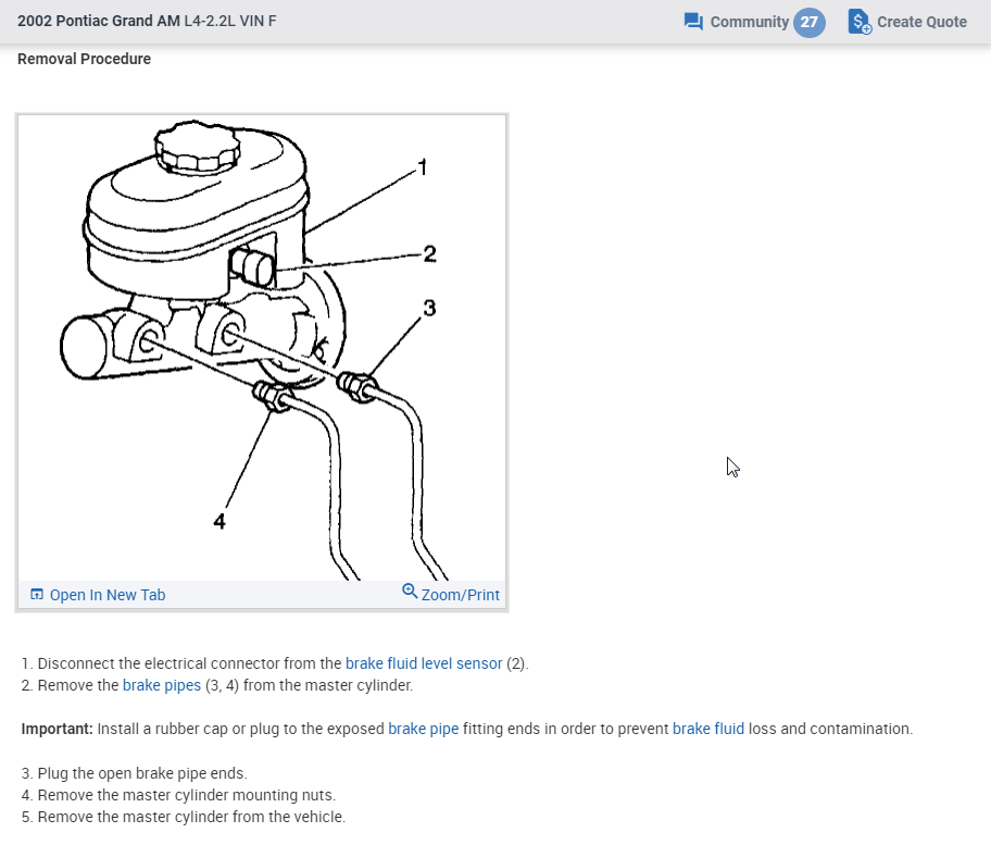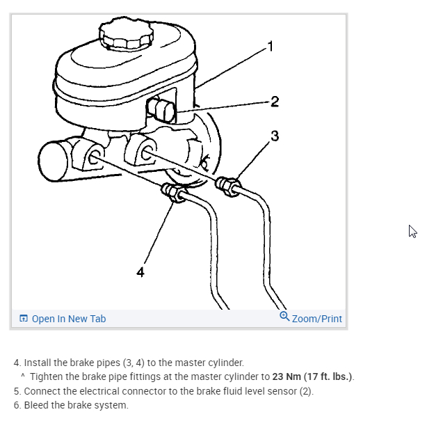 New booster old one was out. so don't know what line goes where and size bolt goes in the booster or cylinder.