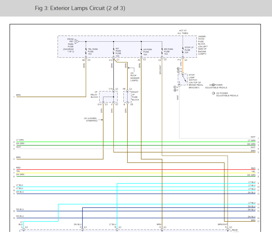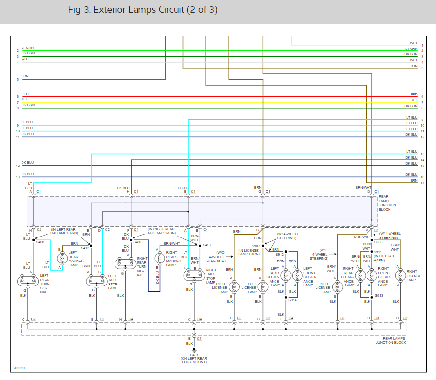 I've attached a wiring diagram of the exterior lights below for your SUV. I've cut the pictures in half so you can view larger. Here is a tutorial on how to test wiring: