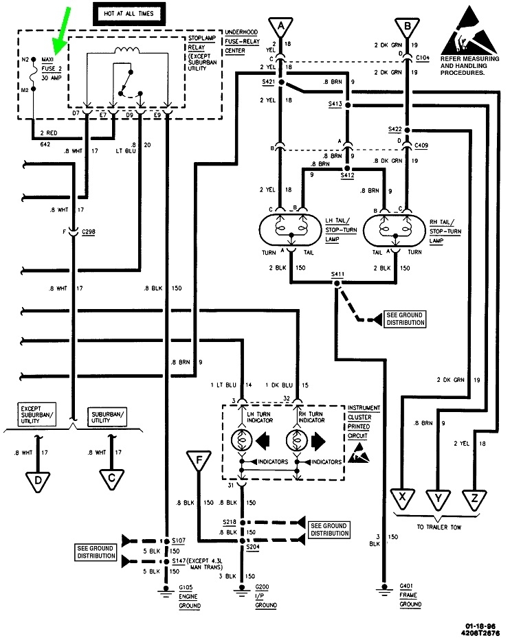 At this point this just tells us the right wire is shorted to ground somewhere between the signal switch and the right rear bulb. Two common causes are chewed-up trailer wiring harnesses, and a shorted trailer plug when you have the four-pin plugs from U-Haul that had three red LEDs on them to help identify the circuits. I ran into about a half dozen of those at the dealership in the '90s.