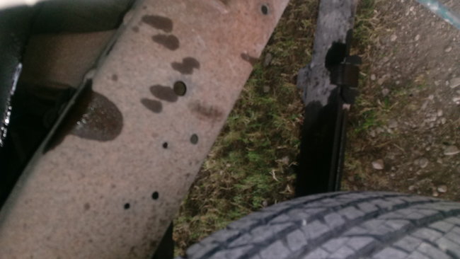 I appreciate the photos, but I can't tell what is leaking. If it's near the right rear wheel, it is going to be the wheel cylinder or the steel line going to it. That line sits on top of the axle housing. If the line has rusted through, you will see brake fluid spurt out when a helper pushes the brake pedal. The fluid will run to the bottom of the housing, then onto the ground.
