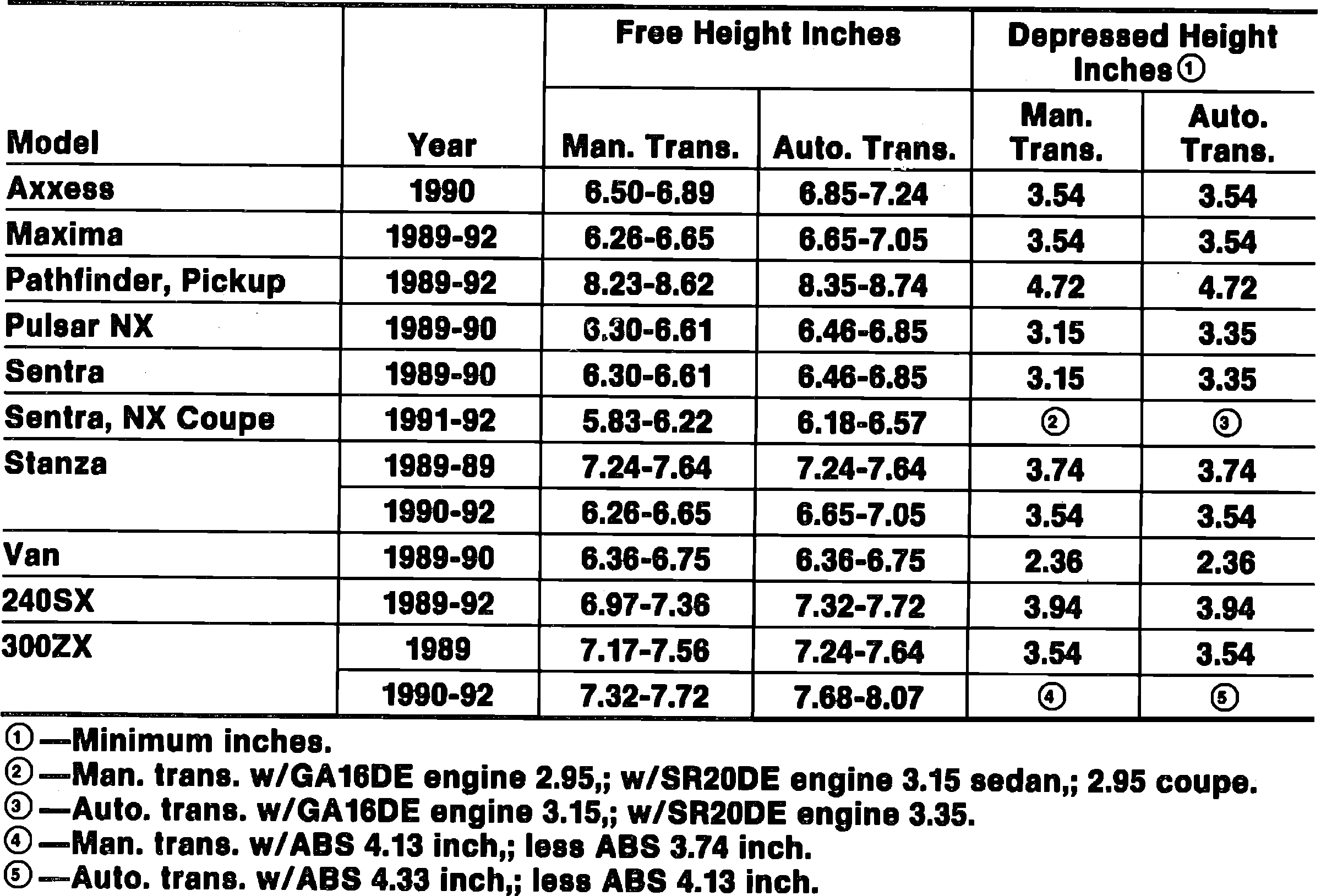 Fig. 7 Brake Pedal Free Height & Depressed Height Specifications