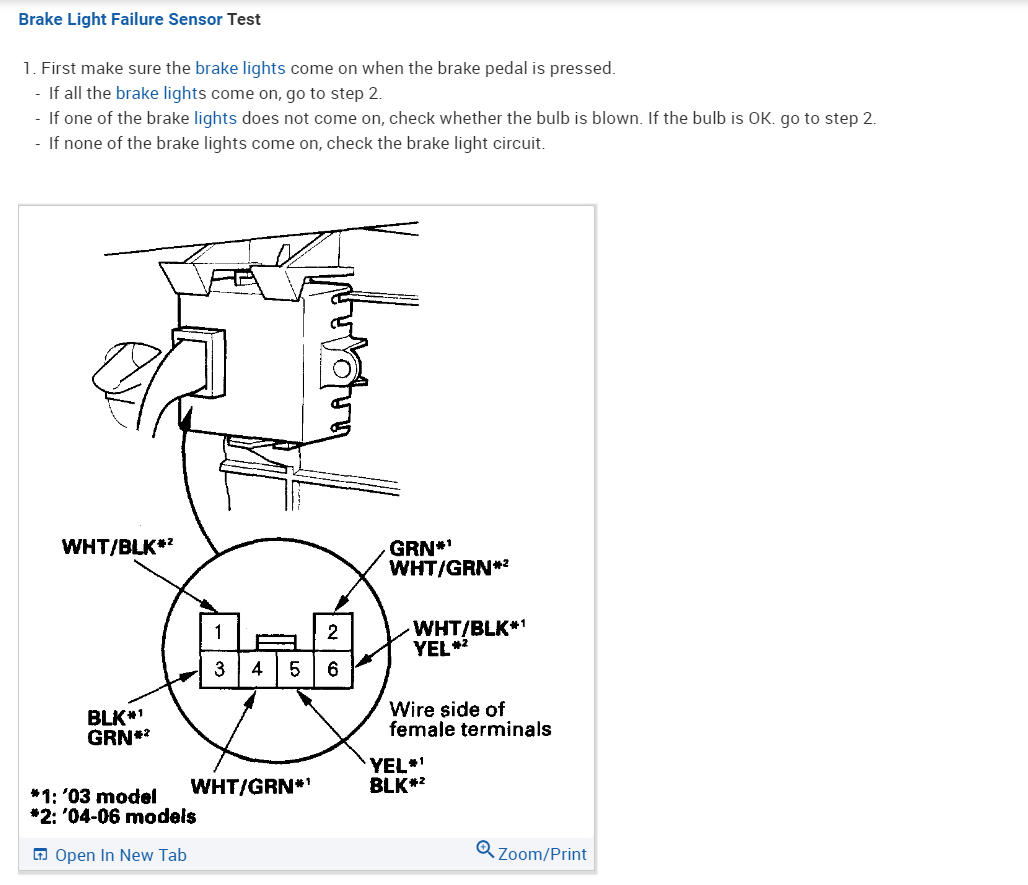 So, on this sensor, power should come in on pin 1 from the brake pedal switch on a white/black wire and go out to the two brake lamps on pin 3 a green wire. I would also verify that pin 6 has power with the key On, and pin 5 has Ground (black wire).